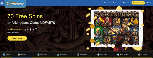 GRAND BAY CASINO NO DEPOSIT BONUS - 70 FREE SPINS ON "VIKINGDOM" - NEW PLAYERS + 375% MATCH