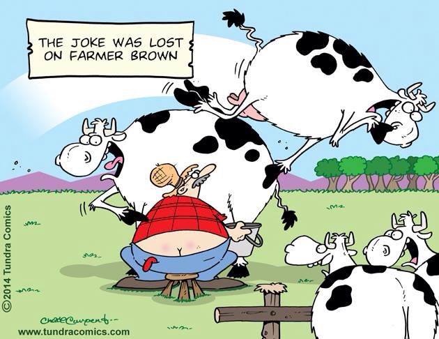I believe that the farmer has a moon showing. His big ol'e butt.