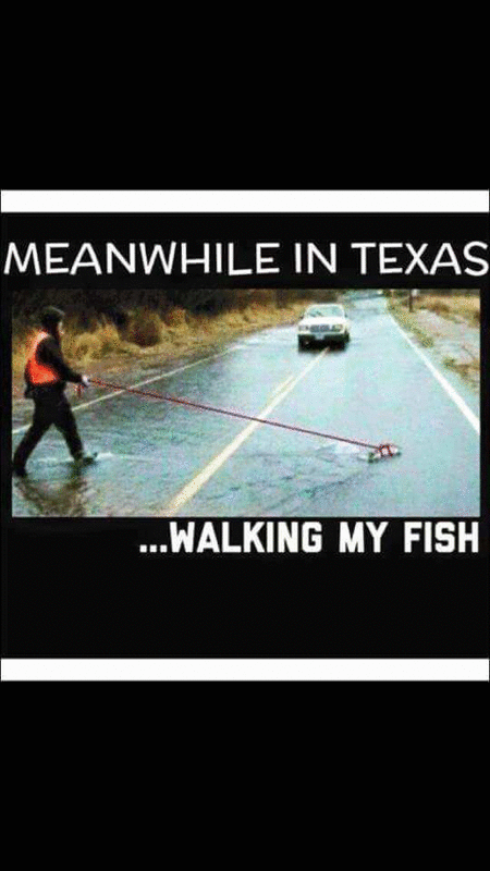Fish swimming down streets? Unreal. I can't say as I have ever experienced that.